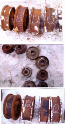 Plusieurs roues en acier solide en inventaire. Certaines avec essieux. Aussi, des fixes, des pivotantes, à glissement sur rails etc. Des petites comme des grosses de toutes capacité. Voir aussi les items similaires pour plus genres de roues.