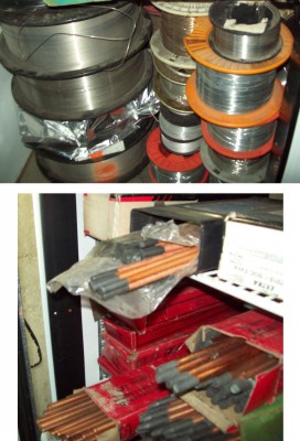 Tiges en carbone. Plusieurs types de rodes et de fils à souder en inventaire. On a aussi des rouleaux de rodes spéciales et de fils à souder pour stainless, acier et aluminium. On a des tiges en carbone pour chanfrein machineries lourdes en réparation. Des centaines de boites de rodes à souder de tout genre.