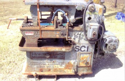 Scie horizontale à fer. Aussi , une scie à ruban à fer non illustrée. En inventaire, aussi plusieurs scies à métaux et bois. Plusieurs va et viens, à ruban, à bois, verticale, horizontale. Aussi, botteuse avec guide de longueurs rotation électrique. contrôle à air, avec convoyeur d'entré et de sortie non illustré.