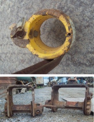 En inventaire plusieurs barrures de fifth wheels pour trailer semi remorque. Ils n'ont pas tous des angles de positionnement. Les sert courroies, sur cette photo, ils paraissent mal mais si on les vends à un bon prix, nous les remettons à neuf ( sunblass, peinture etc.)