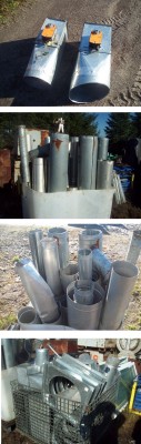 Voir aussi item 12691, 12692, 12693 ,12694. C'est la suite. J'ai plusieurs composantes pour faire des systèmes d'aération. J'ai de tout. J'ai des tuyaux de chauffages, des hotes, des coupes feux, des sortie d'air, des grilles, d'aérations ajustables ou non, des trappes, des systèmes avec valves manuelles ou électriques incorporées, etc. Parmi les items énumérés précédemment, j'en ai en stainless, en acier galvanisé ou en aluminium.