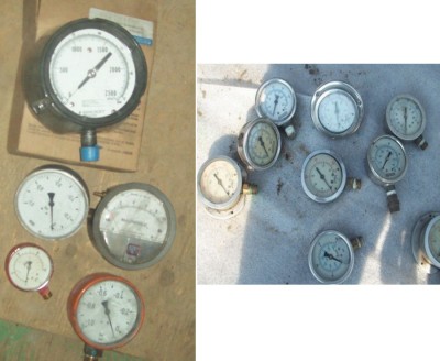 Nous avons un très grand nombre (quelque centaine) de cadrans divers; à pression, vacuum, etc. De petits jusqu'à 8 pouces. Indication en PSI et/ou en BAR. Plusieurs ont le body en stainless 316 avec body étanche remplit d'huile spéciale pour la protection.