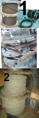 Plusieurs centaines de milliers de pieds de câbles en acier en inventaire. Plusieurs grosseurs en inventaire au choix de l'acheteur. Voir les items similaires pour plus de câbles. J'ai du neuf et du usagé. J'en ai du flexible, rigide et du tressé. En acier galvanisé ou sans protection. Et beaucoup d'autres non illustrés. Note 1 : Neuf, du 1 pouce gradé. On voit les lignes vertes. J'ai une demi remorque neuf et usagé non illustré. Note 2: J'ai du câble en nylon, en chanvre, en jute, etc.